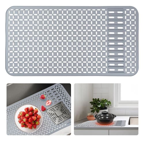 Este é um tapete protetor de pia para uma pia de tigela única de fazenda de tamanho grande. Este tapete protetor de pia tem 64 cm de comprimento e 35 cm de largura e é compatível com pias de tigela única de cozinha de fazenda grande e qualquer ocasião precisa de um tapete de cozinha de tamanho grande. - ?Orifícios de drenagem faça você mesmo?Este é um tapete completo de silicone para pia sem furos originalmente. E você pode fazer um orifício de drenagem neste tapete com placa de acrílico anexada de acordo com as posições de drenagem de suas pias. Este tapete é compatível com qualquer pia com qualquer posição de drenagem. - ?Tapete de tamanho grande?Este tapete protetor de pia tem 71 cm de comprimento e 39 cm de largura e é compatível com pias de tigela única de cozinha de fazenda, e qualquer ocasião precisa de um tapete de cozinha de tamanho grande. - ?Materiais de silicone?Este tapete de pia para o fundo da pia da cozinha é feito de silicone de grau alimentício, o material é dobrável, protege e é à prova de ferrugem. E é útil para reduzir a força repentina para proteger os pratos frágeis e vidros e evitar arranhões em pias de aço inoxidável/cerâmica. - ?Tapete multifuncional? Este protetor de pia para pia de cozinha tem capacidade para segurar panelas quentes e pratos ou bancada de porcelana diretamente do forno/fogão. Também pode ser utilizado como uma grade de secagem, um escorredor de louça, um rack de drenagem, uma grade de descongelamento e assim por diante. - Serviço 100% satisfatório: se você tiver alguma dúvida sobre este produto, a qualquer momento e forneceremos um serviço satisfatório.