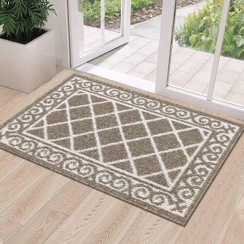 HEBE Tapete interno de borracha antiderrapante tapete de entrada para porta da frente ao ar livre lavável na máquina facilmente mantém seu ambiente limpo e seco e deixa sua casa mais doce e quente. Descrição do produto: Estilo: padrões geométricos Cor: preto e café. Tamanho: cerca de 81 cm x 50 cm Material: Microfibra de alta qualidade O pacote inclui: 1 peça x tapete de entrada grande Características do tapete de boas-vindas ao ar livre: v Este tapete de sapato é ideal para portas de entrada, cozinhas, corredores, lobby, escritório, garagem, ocasião comercial com alto tráfego interno. v Com tecido de microfibra de alta qualidade, pode remover sujeira, poeira, areia, grama ou neve, mantém seu chão limpo e seco. v Base de borracha termoplástica antiderrapante, o tapete interno da porta frontal oferece proteção, não escorrega ou arranha o chão. v O design discreto nunca prende a porta, perfeito para uso interno e externo. v Varra com uma vassoura ou aspire regularmente ou sacuda ao ar livre ou use uma mangueira de jardim para enxaguar o tapete de porta ao ar livre. Para uma limpeza mais profunda, lave na máquina e seque ao ar livre. - Capachos super absorvem umidade e sujeira: o tamanho do tapete de porta é de 91 cm x 61 cm, é feito de tecido de polipropileno de alta qualidade, água e lama super absorvente, ajuda a remover sujeira, poeira, areia, grama ou neve dos sapatos e mantém o chão limpo e seco. Perfeito para entrada interna e externa, varanda, corredores! - Tapete antiderrapante e discreto para ambientes internos e externos: a espessura do nosso tapete de boas-vindas interno é de 0,6 cm. O design discreto dos tapetes de porta garante que sua porta não fique presa. E o suporte antiderrapante garante que o tapete de entrada permaneça no lugar. Nossos tapetes de porta são adequados para sua porta da frente, corredor, cozinha, escritório e pátio. - Tapete de entrada resistente: os tapetes de boas-vindas feitos de tecido de polipropileno de alta qualidade, com tecnologia de bloqueio de fibra de atualização adotada tornam a fibra de poliéster sólida e prática, não cai facilmente. Após muitos testes de lavagem na máquina, o tapete de sapato ainda está como novo. - Tapete de entrada fácil de limpar: basta aspirar o tapete de entrada com um aspirador de mão, varrer com uma vassoura ou sacudir o capacho fora ou sobre a lixeira. Para uma limpeza mais profunda, o capacho é lavável na máquina e pode ser jogado na secadora. - Tapetes de entrada amplamente utilizados no interior: nossos capachos de casa de fazenda são adequados para todos os climas, perfeitos para entradas, lobby, corredores, cozinha, lavanderias, escritórios, garagem ou qualquer área de alto tráfego.