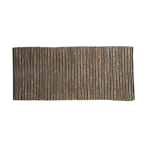 O Tapete Intrecciate tem 140 x 60 cm e é produzido em 50% fibra sintética e 50% algodão.