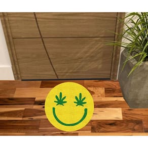Tapete tipo Capacho Vinil com fibras entrelaçadas e costado emborrachado com arte pinta em tinta vinílica especial.