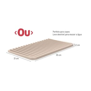 Tapete Escorredor De Copos Trium Marca Ou Drinks Mat Bar Cor: Bege Produto perfeito para utilizar como escorredor de copos, conta com um leve caimento que leva a água direto para a pia.Serve para para o preparo de drinks, batidas, sucos, etc. Características: antiderrapante, resistente, durável, lavável. Ótimo acabamento e ideal para o seu dia a dia. Informações técnicas:Medidas: 35 x 21 x 1,2 CmMaterial: PolipropilenoPeso: 0,144 KgMarca: Ou Produto nacional.