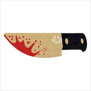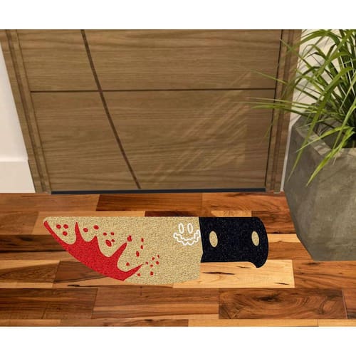 Tapete tipo Capacho Vinil com fibras entrelaçadas e costado emborrachado com arte pinta em tinta vinílica especial.