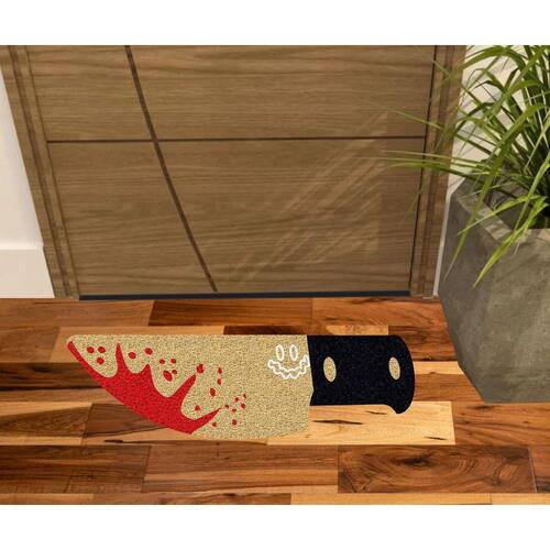 Tapete tipo Capacho Vinil com fibras entrelaçadas e costado emborrachado com arte pinta em tinta vinílica especial.