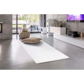 Pluma é a melhor definição para esse tapete. Estilo pele de coelho, tem toque muito macio proporcionando conforto e a agradável sensação de satisfação. Confeccionado com 600 gramas por metro quadrado e base antiderrapante.