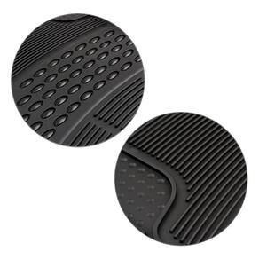 Fabricado em PVC injetado flexível Textura antiderrapante Bordas retentoras de sujeira Garante maior durabilidade 20 vezes mais resistente que os tapetes comuns 100% ecológico 100% reciclado Sem odor Cor preta 5 peças Compatibilidade universal Tapete dianteiro: 77 Cm x 51 Cm Tapete traseiro: 51 Cm x 44 Cm Tapete túnel: 71 x 29,5