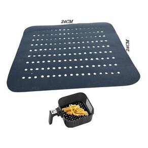 Por gentileza, antes de fazer a compra, medir o diâmetro interno do cesto da sua air fryer. Atenção para a descrição do produto: manta/folha de teflon para airfryer fritadeira elétrica . A manta é de teflon não é de silicone possui espessura de uma folha, maleável, super resistente à altas temperaturas. A gente sabe que você procura funcionalidade na hora de preparar seus alimentos, além de facilitar muito a limpeza é fácil de lavar. É reutilizável, lavável não transmite odor e sabor aos alimentos. Resistente, suporta temperaturas de até 260º . Antiaderente, evita que os alimentos grudem no seu cesto . Cor: preta contem 01 unidade medidas aproximadas: 24 cm x 24 cm material : teflon não é plástico Ean: 3671863601009