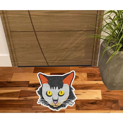 Tapete tipo Capacho Vinil com fibras entrelaçadas e costado emborrachado com arte pinta em tinta vinílica especial.
