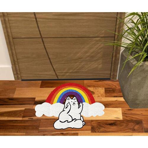 Tapete Capacho Vinil com fibras entrelaçadas e costado emborrachado com arte pinta em tinta vinílica especial.