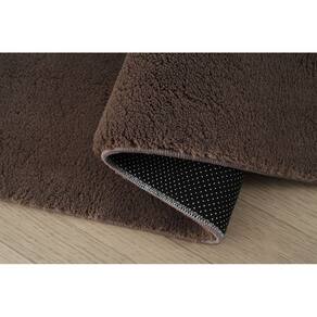 A base do tapete também é feita em 100% poliéster e conta com um antiderrapante sintético, aumentando a segurança e reduzindo o risco de escorregamentos.