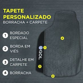 - Bordado em carpete com o modelo do carro e/ou emblema da montadora