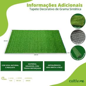 Características * Produto: Tapete Decorativo de Grama Sintética * Comprimento: 200 cm * Largura: 100 cm * Altura/Espessura: 1 cm * Base: Antiderrapante * Características: Leve, fácil de transportar e instalar