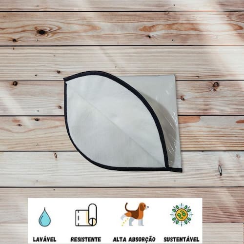 A segunda impermeável para retenção da urina, impedindo que vaze para o chão. composição: plástico maleável de 0,10 mm , com borda de viés preto de 22 mm.