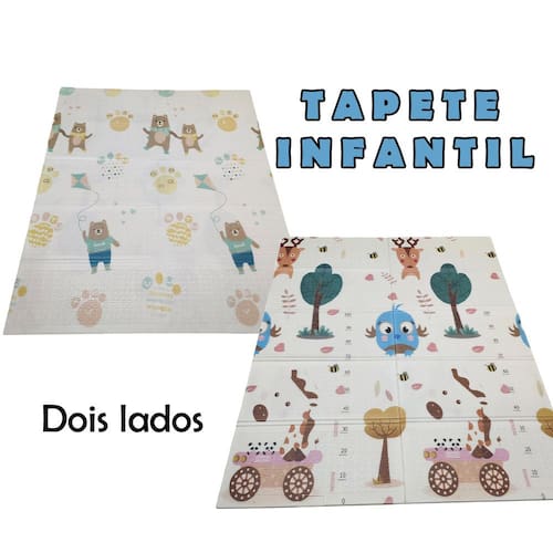 Com duas estampas diferentes e coloridas de ambos os lados, incentivando a brincadeira e estimulando o desenvolvimento infantil.