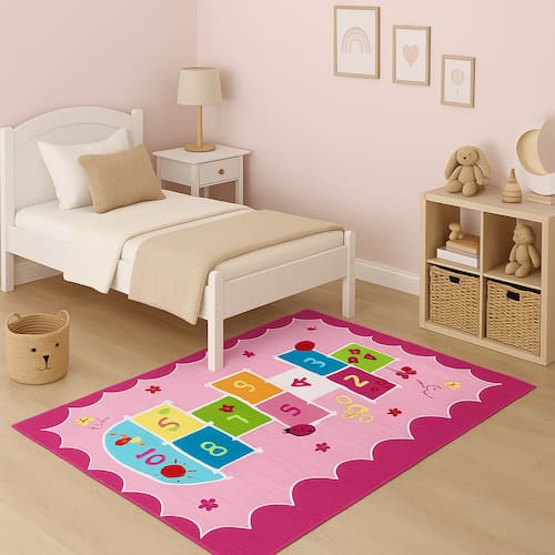 Tapete Infantil Emborrachado Antiderrapante 100x140cm Amarelinha Rosa -