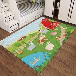 Transforme o quarto do seu pequeno com um toque de alegria nosso tapete infantil com estampas divertidas e coloridas é perfeito para deixar o ambiente mais aconchegante, seguro e cheio de personalidade. Estampas divertidas e exclusivas: com temas infantis encantadores animais, jardim, safari, unicórnios, dinossauros... , ele traz vida ao espaço e estimula a criatividade dos pequenos. Macio e seguro: feito com material confortável e antiderrapante, proporciona segurança e conforto para brincar, ler ou descansar. Tamanhos ideais para quartos e brinquedotecas Se adapta perfeitamente ao espaço infantil, combinando com caminhas, berços e móveis temáticos.