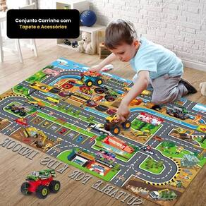 O tapete funciona como uma base lúdica para brincadeiras de pista de carrinho, promovendo o desenvolvimento da coordenação motora, da criatividade e do raciocínio lógico de forma natural e divertida. Os carrinhos e acessórios de trânsito incluídos tornam a experiência ainda mais envolvente, incentivando a interação e o aprendizado por meio do brincar.