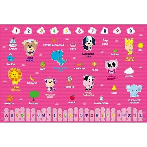 Tapete Infantil Rosa Dupla Face Turminha Animal - Unik TI1824-F