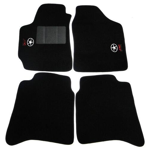 Tapete Jac J5 Carpete Base Pinada Jogo de tapete linha Elithe carpete com espessura de 5mm na cor preta com base antiderrapante em pvc pinado. Bordado com a grafia e nome, lavável. Jogo com 4 peças.