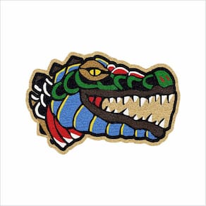 Tapete tipo Capacho Vinil com fibras entrelaçadas e costado emborrachado com arte pinta em tinta vinílica especial.
