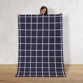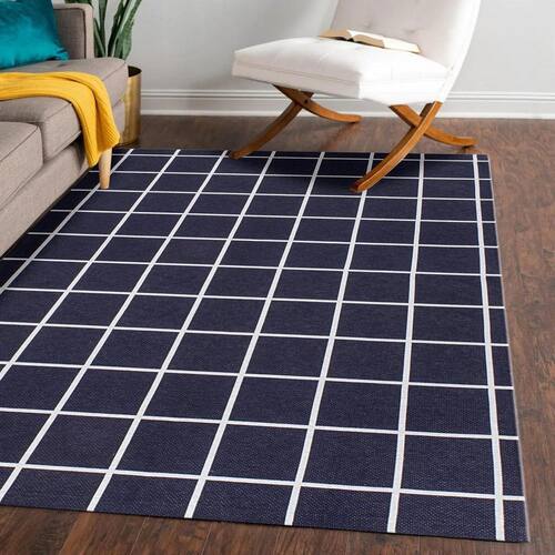 Tapete Jacquard Emborrachado 2,00M X 3,00M Sala Grid Marinho