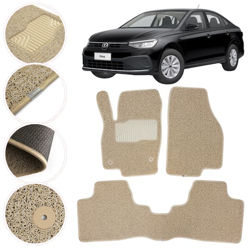 Elegância: Tapete personalizado por modelo de veículo, cobrindo totalmente os espaços dianteiros e traseiros. Tapete em Vinil Gold flexível, com bordas em couro da mesma cor.