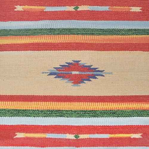 Ficha Técnica Acabamento da Borda : Franja Ambiente : Sala, Quarto Aspecto da Superfície : Boucle Composição da Base : Dupla Face Composição da Superfície : Algodão Cores Principais : Vermelho, Verde, Azul Espessura : Fino, 4 mm Estilo do Desenho : Geométrico Forma de Produção : Artesanal, feito à mão Formato : Retangular Modelo : Kilim Natureza da Superfície : Natural Procedência : Índia Código : 142004 Tamanho Nominal (cm) : 150x200 Tamanho Real (cm) : 140x200
