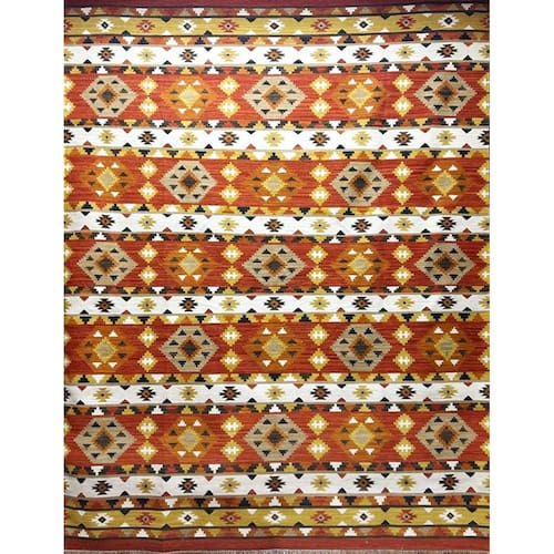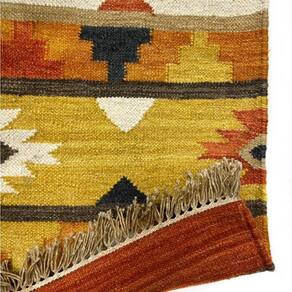 Ficha Técnica Acabamento da Borda : Franja Ambiente : Sala Aspecto da Superfície : Boucle Composição da Base : Dupla face Composição da Superfície : Lã Cores Principais : Laranja, Amarelo, Verde Espessura : Fino, 5 mm Estilo do Desenho : Listrado Forma de Produção : Artesanal, feito à mão Formato : Retangular Modelo : Kilim Natureza da Superfície : Natural Procedência : Indiano Código : 1115 Tamanho Nominal (cm) : 300x400 Medida Real (cm) : 309x398 Marca: Indiano