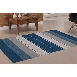 Ficha Técnica Acabamento da Borda : Viés Ambiente : Sala, Quarto Aspecto da Superfície : Tear, trama Composição da Base : Dupla-face Composição da Superfície : Algodão Cores Principais : Azul Espessura : Fino, 5 mm Estilo do Desenho : Listrado Forma de Produção : Artesanal, À mão Formato : Retangular Modelo : Kilim Natureza da Superfície : Natural Procedência : Índia Código : 05001281 Tamanho Nominal (cm) : 100x150 Medida Real (cm) : 100x140