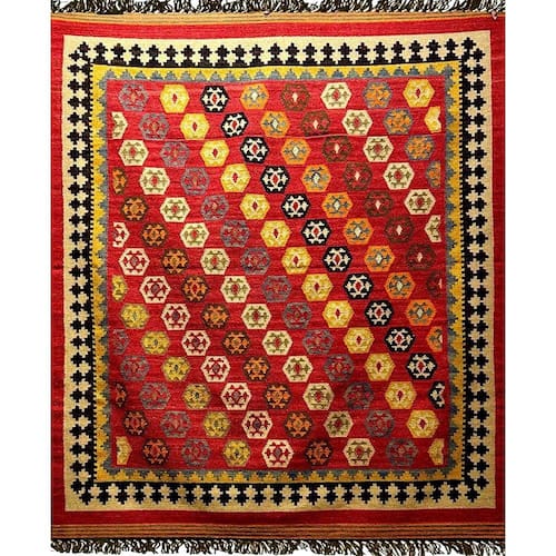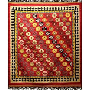 Ficha Técnica Acabamento da Borda : Franja Ambiente : Sala Aspecto da Superfície : Bouclê Composição da Base : Dupla-face Composição da Superfície : Lã Cores Principais : Vermelho, Amarelo, Preto Espessura : Fino, 4 mm Estilo do Desenho : Geométrico Forma de Produção : Artesanal, feito à mão Formato : Retangular Modelo : Kilim Natureza da Superfície : Natural Procedência : Indiano Código : 75067 Tamanho Nominal (cm) : 200x250 Medida Real (cm) : 158x246