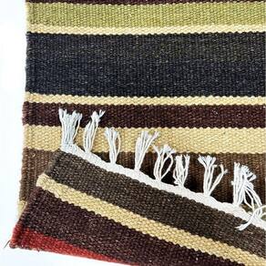 Ficha Técnica Acabamento da Borda : Franja Ambiente : Corredor Aspecto da Superfície : Bouclê Composição da Base : Dupla Face Composição da Superfície : Lã Cores Principais : Marrom, terracota, verde Espessura : Fino, 4 mm Estilo do Desenho : Listrado Forma de Produção : Artesanal, feito à mão Formato : Passadeira Modelo : Kilim Natureza da Superfície : Natural Procedência : Indiano Código : 509421 Tamanho Nominal (cm) : 80x300 Medida Real (cm) : 76x295 Marca: Solace