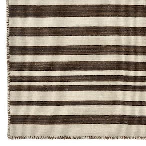 Ficha Técnica Acabamento da Borda : Cordão Ambiente : Sala Aspecto da Superfície : Tear, trama Composição da Base : Dupla face Composição da Superfície : Lã Cores Principais : Marrom Espessura : Fino, 4 mm Estilo do Desenho : Listrado Forma de Produção : Artesanal, feito à mão Formato : Retangular Modelo : Kilim Natureza da Superfície : Natural Procedência : India Código : 025547 Tamanho Nominal (cm) : 250x350 Medida Real (cm) : 250x350