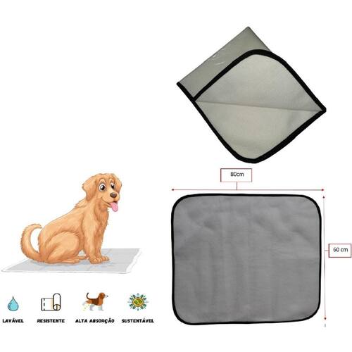 =============================================== Especificação do produto: Fabricação própria, fabricado com duas camadas. A primeira com alta absorção composição: feltro 270 gr/m, aproximadamente 4 mm de espessura ; A segunda impermeável para retenção da urina, impedindo que vaze para o chão. composição: plástico maleável de 0,10 mm , com borda de viés preto de 22 mm. Produto ecológico e bem mais econômico do que os descartáveis e absorve mais. Parte superior própria para alta absorção. Fácil de usar, apenas passar na água corrente e colocar pra secar. Para os pets macho, orientamos a colocar um cone no centro do tapete. Pode ser utilizado no interior do sanitário canino, não inala odor. Garantimos a qualidade do produto.