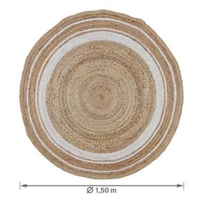 Este tapete redondo, com um diametro de 1,50 metros, e uma escolha perfeita para adicionar um toque de elegancia e naturalidade a qualquer espaco interno. Fabricado inteiramente em juta, um material conhecido por sua durabilidade e aspecto rustico, este tapete apresenta uma tonalidade bege que se harmoniza facilmente com diversos estilos de decoracao. Com uma espessura de 5,00 mm, ele e ideal para areas secas como quartos, salas e varandas. O design liso e a trama trancada conferem ao tapete um visual discreto e ao mesmo tempo sofisticado, sem a necessidade de antiderrapante. Este produto e uma excelente escolha para quem busca beleza e funcionalidade em um so item.
