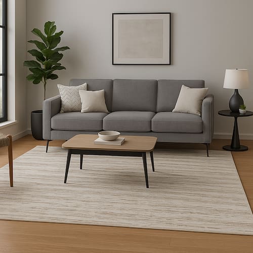 O tapete Lucena da Niazitex é a escolha ideal para quem busca um visual limpo e neutro, ele combina perfeitamente com diversos estilos de decoração.