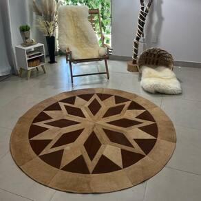 Tapete mandala redondo 100% couro 1,50m diâmetro - rd11 Cor marron e bege Taxclassid nenhum Swfeatured não Countryofmanufacture brasil Productimagesize padrão Tamanho g Produto de origem animalbr / O couro utilizado na fabricação dos nossos tapetes, almofadas e demais artigos é natural e seguem as cores do próprio animal, por este motivo, o tamanho final e a coloração podem sofrer uma pequena variação.br / Ean: 7805297642864