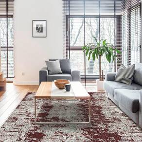 Tapete Mesclado para Sala Vermelho Retangular 200x135cm Jaquard Odessa.