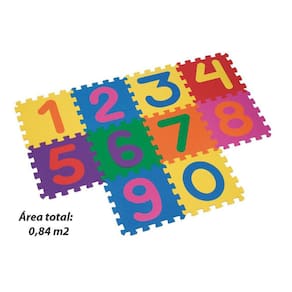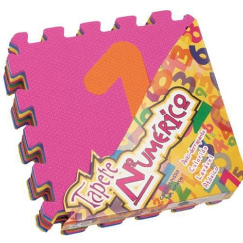Tapete Numérico Texturizado 10 PeçasTapete em eva, texturizado, antiderrapante, colorido, atóxico, acústico, durável, lavável, macio, anti-impacto, higiênico, protetor térmico e de fácil montagem.Serve como decoração e brincadeiras de espaços infantis. Usados em quartos, brinquedotecas, salas escolares, playground, varanda e outros. Pode ser utilizado em ambientes internos e externos.Auxilia no desenvolvimento da coordenação motora fina e corporal.Composto por 10 peças de 29 cm x29 cm, sendo 10 placas de número de 0 a 9. Área coberta de 0,84 m2.Idade recomendada: todas as idades. Certificado pelo inmetro. Ce bri 0012/2019-01. Nm 300/2004.Imagens meramente ilustrativas.Não deixe seu bebê sozinho.