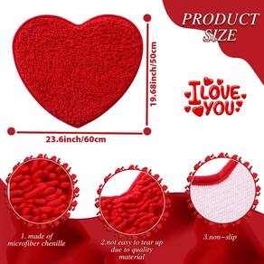 Características: Bela decoração de casa: o lindo tapete para quarto é uma linda e requintada decoração de casa quando colocado no chão, que pode facilmente chamar a atenção das pessoas e deixar seu chão arrumado. Você pode se deitar sobre eles para obter a experiência de uso mais confortável. Presentes festivos: o tapete de banheiro com coração significa cuidado e amor pela pessoa que está ao seu redor, enviando como presente festivo para mostrar sua sinceridade, que também é um item essencial e prático em casa. Especificações: Material: microfibra chenille Cor: vermelho Tamanho: aproximadamente 20 x 24 polegadas O pacote inclui: 4 x tapete em forma de coração Notas: Medição manual. Considere pequenos erros de tamanho. A cor pode ter uma pequena diferença devido às diferentes exibições na tela. - Design de Dia dos Namorados: os tapetes de coração para banheiro têm formato de coração, o que é mais elegante e romântico para você enviar para sua namorada, tornando-os muito divertidos e aconchegantes, delicados e cuidadosos - Material confiável: os tapetes de dia dos namorados são feitos principalmente de microfibra chenille, fazendo com que você se sinta relaxado e confortável ao sentar ou deitar sobre eles. Não são fáceis de rasgar devido ao material de qualidade, você pode colocá-los em seu quarto ou banheiro - Muitos lugares: você pode colocar esses tapetes de banheiro em sua sala de estar, tenda infantil, sofá, quarto infantil ou animal de estimação tapete de dormir, também um tapete elegante para ioga, adiciona mais cor e decoração ao seu quarto e proporciona um bom humor todos os dias - Dicas quentes: o tapete de banheiro em forma de coração pode ser lavado à mão ou colocado na máquina de lavar, fácil de limpar e limpar a poeira e a sujeira da superfície, não secar na secadora nem passar a ferro; o tapete vem com embalagem a vácuo; haverá alguns vincos ao abri-lo, mas será restaurado 3 ou 4 dias depois e não afetará seu uso - O que está incluído: você receberá 4 peças de tapetes macios e fofos com vermelho, e cada tapete mede aproximadamente 20 x 24 polegadas, o tamanho adequado para as crianças brincarem, sentarem e deitarem, para que seu quarto pareça relaxante e romântico
