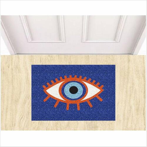 Tapete Capacho Vinil com fibras entrelaçadas e costado emborrachado com arte pinta em tinta vinílica especial.
