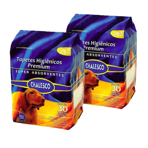 Tapete P/Cachorro Urinar Descartavel Chalesco 60 Unidades - Indicado para cães; - Possui gel super absorvente; - Com barreira anti - vazamento; - Contém atrativo canino; - Fitas adesivas para fixação; - Tamanho 90 x 60cm; - Kit com 2 pacotes de 30 unidades cada. Neste Kit 2 Tapetes Higiênico Chalesco você aproveita a praticidade e garante 60 unidades de tapete higiênico com um preço super acessível. O Tapete Higiênico para Cães Chalesco apresenta poderoso gel absorvente que mantém o ambiente limpo, seco e sem odores desagradáveis. Ele imita a textura de um gramado artificial, oferecendo mais conforto aos animais. Além disso, o tapete possui adesivos para prender no chão ou na parede. Além disso, é confeccionado em materiais resistentes, com barreiras anti-vazamentos especiais, que impedem os vazamentos de fezes.