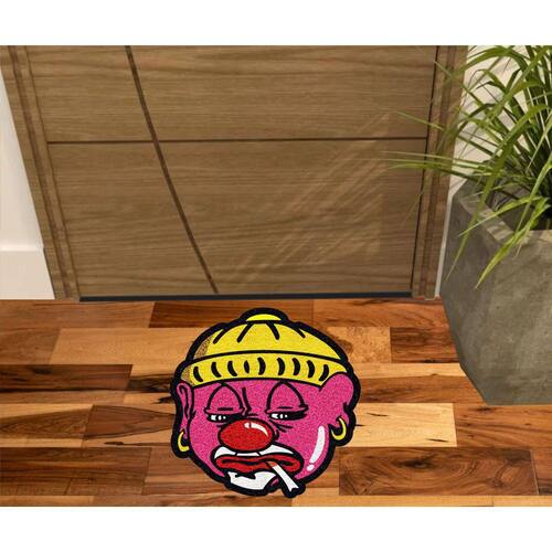Tapete Capacho Vinil com fibras entrelaçadas e costado emborrachado com arte pinta em tinta vinílica especial.