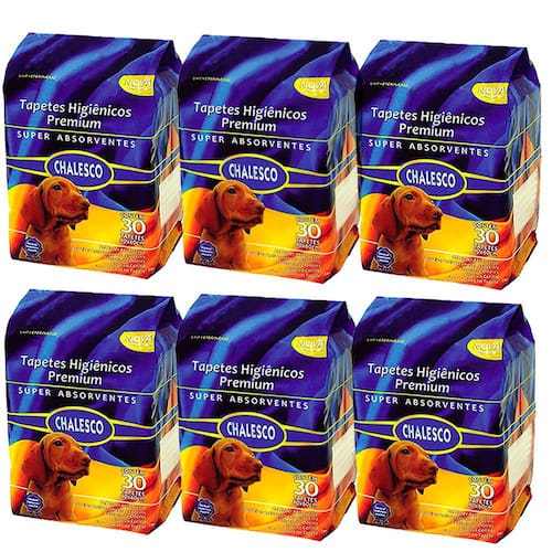 Tapete para Cachorro Descartavel Atacado Chalesco 180 Unidades - Indicado para cães; - Possui gel super absorvente; - Com barreira anti - vazamento; - Contém atrativo canino; - Fitas adesivas para fixação; - Tamanho 90 x 60cm; - Kit com 6 pacotes de 30 unidades cada. Neste Kit 6 Tapetes Higiênico Chalesco você aproveita a praticidade e garante 180 unidades de tapete higiênico com um preço super acessível. O Tapete Higiênico para Cães Chalesco apresenta poderoso gel absorvente que mantém o ambiente limpo, seco e sem odores desagradáveis. Ele imita a textura de um gramado artificial, oferecendo mais conforto aos animais. Além disso, o tapete possui adesivos para prender no chão ou na parede. Além disso, é confeccionado em materiais resistentes, com barreiras anti-vazamentos especiais, que impedem os vazamentos de fezes.