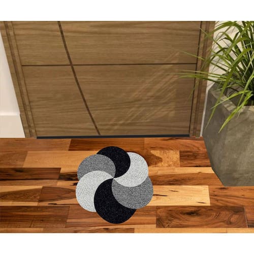 Tapete Capacho Vinil com fibras entrelaçadas e costado emborrachado com arte pinta em tinta vinílica especial.