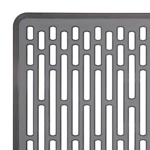 Tapete Para Pia Em Silicone 31x30cm Oxo Cinza O tapete da OXO fornece uma almofada para proteger as superfícies da pia e a louça contra lascas e arranhões. O design robusto fornece estrutura enquanto os pés de silicone antiderrapantes mantêm o tapete no lugar. Os pés também elevam o tapete para promover o fluxo de água e ar para secagem rápida. Ficha técnica:- Código: 4080570767- Marca: OXO- Conteúdo da Embalagem: 1 Tapete para pia- Especificações do produto:Tapete resistente ao mofo e é fácil de limpar- Material: Silicone, sem PVC- Peso: 0,25kg- Dimensões: 31,24cm x 30,73cm x 2,16cm (AxLxP)- Garantia: 3 Meses Contra defeito de fabricação Sobre a Marca - Há mais de 25 anos atrás, Sam Farber percebeu que sua esposa, Betsey, estava tendo problemas para segurar confortavelmente o seu peeler por conta da artrite, o que o fez pensar: por que as ferramentas comuns da cozinha costumam machucar as mãos? Por que não existem ferramentas confortáveis e fáceis de usar? E assim ele descobriu uma oportunidade de ajudar não só sua esposa, como tambem diversas outras pessoas. Desde então, a OXO criou em toda sua história mais de 1000 diferentes produtos para diversas finalidades e áreas da casa, e todos sob o conceito do Design Universal, que tem como foco a facilidade de utilização, a qualidade, a funcionalidade e a eficiência comprovada.
