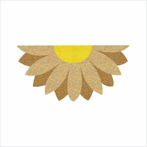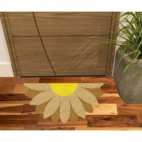 Tapete tipo Capacho Vinil com fibras entrelaçadas e costado emborrachado com arte pinta em tinta vinílica especial.