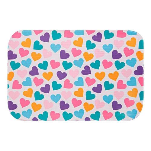 Tapete Para Quarto Estampado Corações Rosa 60cm X 40cm - Base Antiderrapante