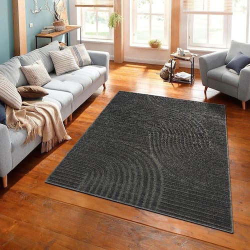 Tapete para Sala e Quarto Realce Sand Grafite 200x250CM Polipropileno Base Resinada Antiderrapante Antialérgico Grafite