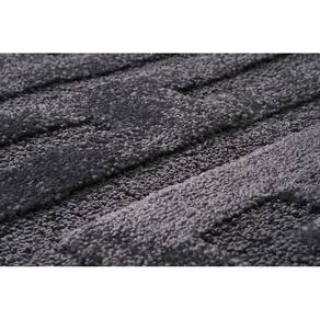O tapete é feito de 100% polipropileno, um material durável e resistente, que permite uma fácil manutenção e limpeza. A altura do pelo é de 12mm, o que proporciona uma sensação agradável de maciez ao toque. Além disso, ele conta com detalhes de baixo relevo em 6mm, que dão textura e profundidade ao design abstrato.