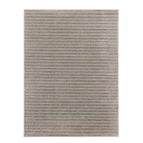 Este tapete é feito de 100% polipropileno, um material durável e resistente a manchas e desbotamento. Com uma altura do pelo de 12mm, o tapete é suave e confortável ao toque, proporcionando uma sensação agradável sob os pés. Além disso, os detalhes de baixo relevo em 6mm adicionam um elemento de textura sutil que complementa perfeitamente o design de listras.