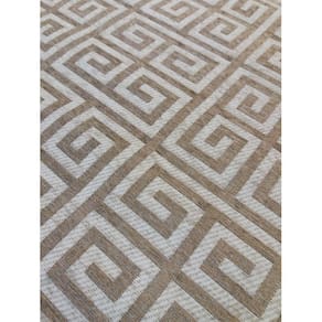 Tapete Para Sala Redondo 150 Cm Grego Bege Marfim Geometrico